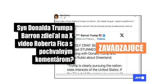 Obrázok Donald Trump Uverejnené 29. 01. 2026 Používatelia sociálnych médií mylne pripísali tweet chváliaci Roberta Fica Barronovi Trumpovi
