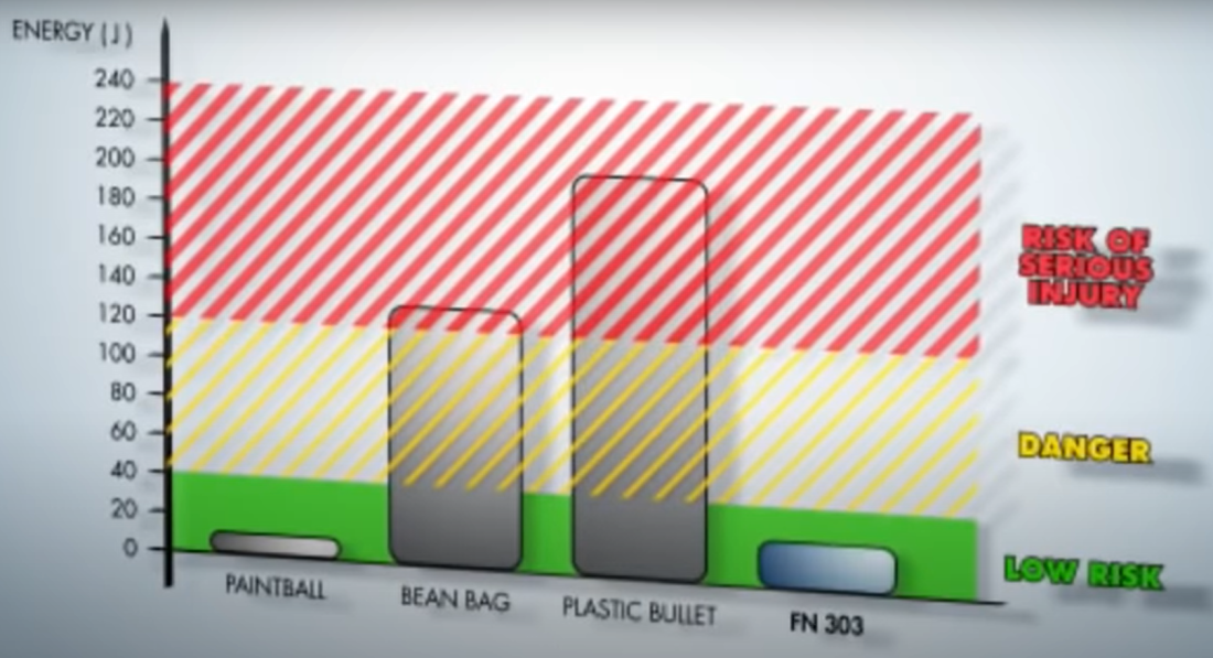 Pri analýze viacerých videí tím AFP Fakty dohľadal, že použitá zbraň bola nesmrtiaca zbraň FN 303 ráže 18mm belgického výrobcu FN Herstal. Polícia taktiež potvrdila použitie tejto zbrane:
