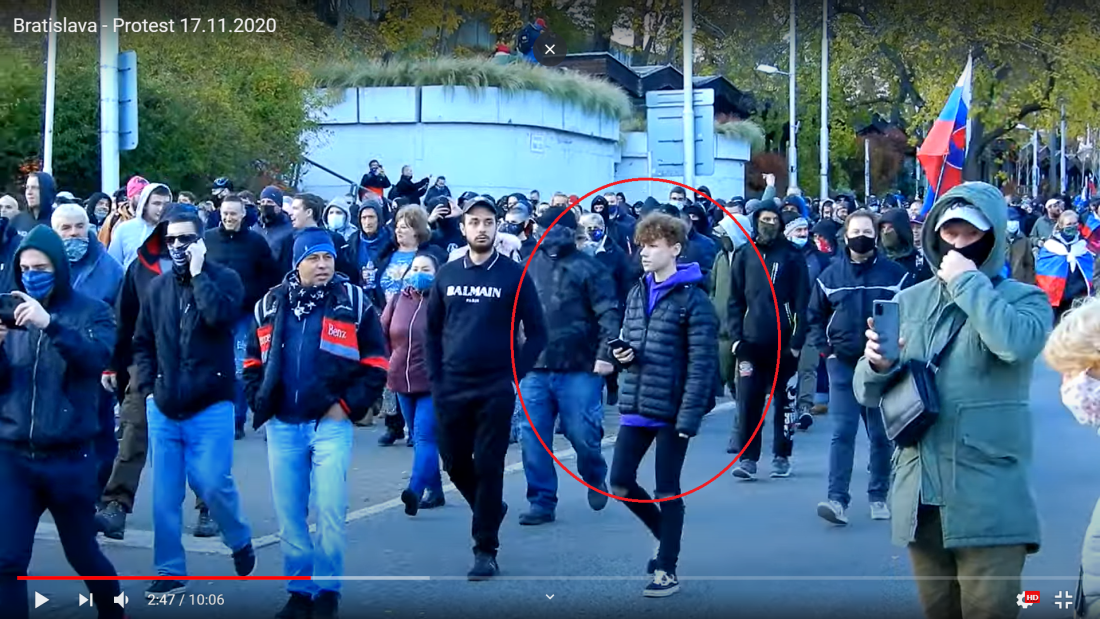 Tvrdenia v príspevku sú nepravdivé. Na základe fotografií a videí na sociálnych sieťach vieme s určitosťou tvrdiť, že 15-ročný chlapec nebol len náhodný okoloidúci na prechádzke. Naopak, bol súčasťou zhromaždenia od samého začiatku protestu na Hlavnej stanici v Bratislave.