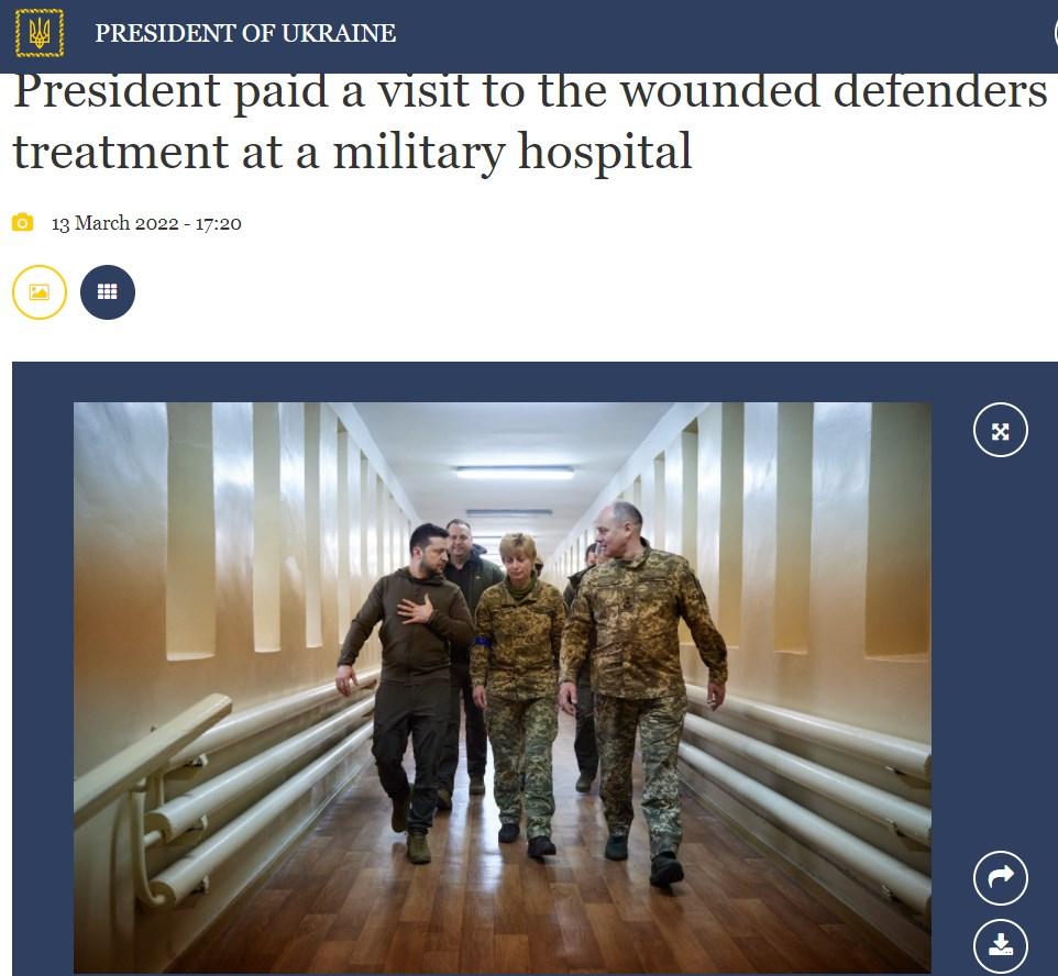 Predmetný príspevok odkazuje na video, ktoré 13. marca 2022 zverejnila prezidentská kancelária Volodymyra Zelenského a ktoré následne prebrali mnohé ďalšie médiá. Vo videu vidíme Zelenského ako udeľuje zraneným vojakom vyznamenania: