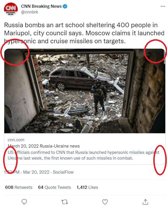 Americká televízia pre AFP potvrdila, že táto správa neexistuje. "CNN neuverejnila túto fotografiu ani text v súvislosti s naším prebiehajúcim spravodajstvom o vojne na Ukrajine," uviedol vedúci oddelenia strategickej komunikácie CNN Matt Dornic 23. marca 2022.