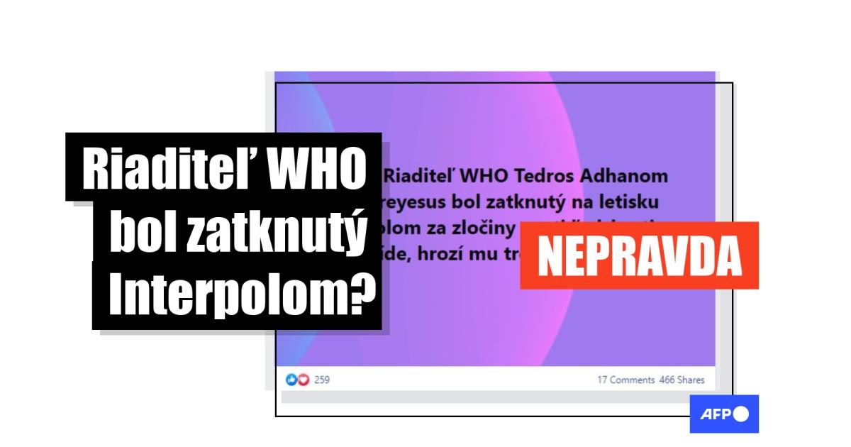 Ako Interpol, tak aj WHO potvrdili 2. augusta agentúre AFP, že tvrdenia o Tedrosovom zatknutí sú nepravdivé.