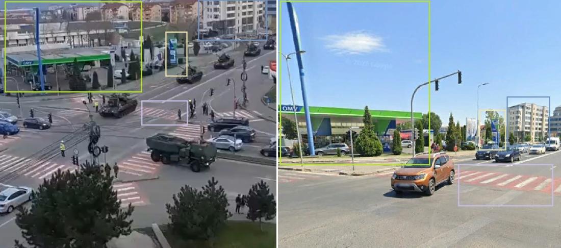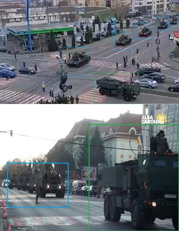 Na oboch videách majú vozidlá aj rumunské vlajky; jediný rozdiel je v tom, že v miestnom spravodajstve televízie Alba Carolina TV vidíme, že protilietadlové vozidlá majú radarové antény v otvorenej polohe.
