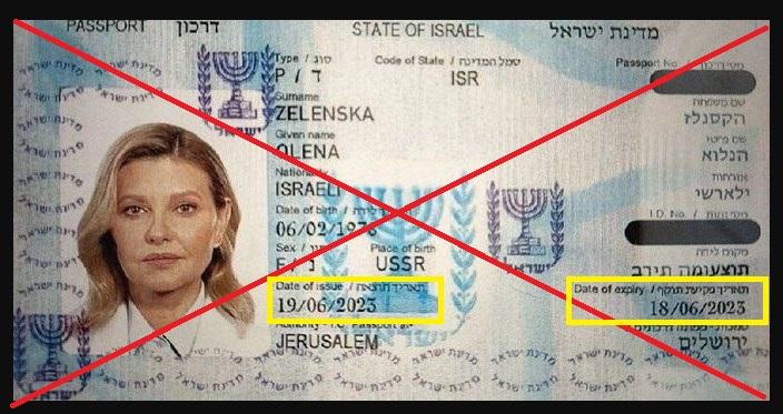 V skutočnosti nejde o pravý pas. Zdá sa, že obrázok vznikol kombinácoiu vzorového pasu izraelského občana, ktorý je dostupný na internete, so záberom ukrajinskej prvej dámy z videa zverejneného online v apríli 2023.