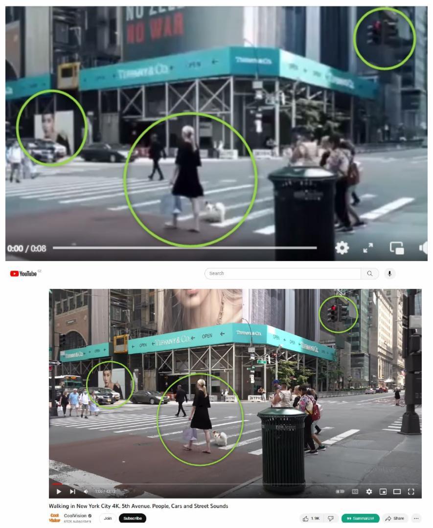 Pomocou tejto metódy sme rýchlo našli pôvodné video (archívny odkaz), ktoré bolo zneužité na digitálnu manipuláciu. Bolo uverejnené 15. júla 2021 s názvom „Walking in New York City 4K. 5th Avenue. People, Cars and Street Sounds“.