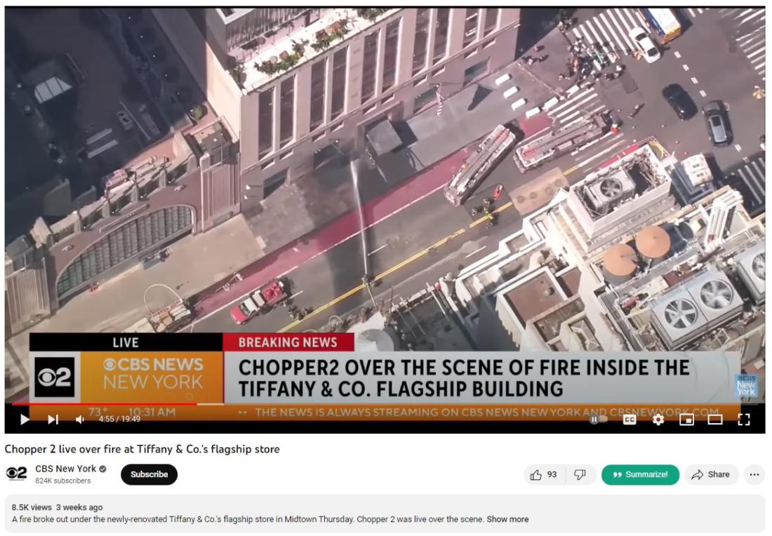 Podľa spravodajských článkov prebiehala v budove vlajkovej predajne Tiffany & Co. na Manhattane rekonštrukcia od roku 2019 do apríla 2023. Pomocou StreetView v službe Google Maps môžeme vidieť, že budova bola v rokoch 2021 a 2022 skutočne pod lešením.