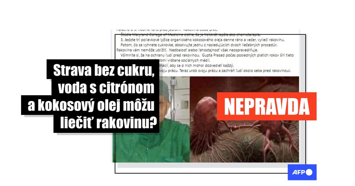 V nepravdivom príspevku sa uvádza aj tvrdenie o tom, že „užívanie troch lyžíc organického kokosového oleja ráno a večer vylieči rakovinu“.