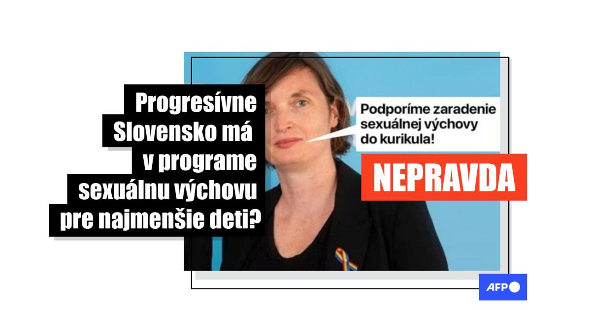 V období okolo parlamentných volieb na konci septembra 2023 sa na sociálnych sieťach šírili nepravdivé obrázky, ktoré mali dokazovať, že Progresívne Slovensko (PS) chce zaviesť sexuálnu výchovu o témach, ako je napríklad masturbácia pre najmenšie deti. Obrázky boli vytvorené tak, aby vyzerali ako oficiálne dokumenty strany. Boli však falošné, vytvorené s použitím textu o dokumente WHO vydaného pred trinástimi rokmi. Hoci PS chce, aby sa v učebných osnovách objavila určitá forma sexuálnej výchovy, tieto odporúčania súčasťou programu nie sú, uviedla pre agentúru AFP jedna z predstaviteliek strany. Strana túto tému prenecháva odborníkom a odborníčkam, uviedla.