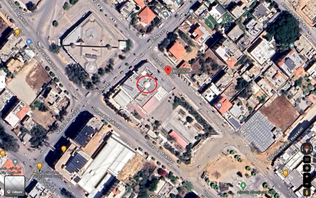 Budova Palestínskej legislatívnej rady sa nachádza na ulici Omer El Mokhtar v meste Gaza (archívny odkaz). Budova má charakteristické architektonické prvky, napríklad ľahko rozpoznateľnú bielu kupolu.