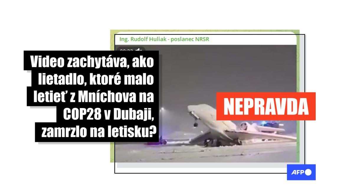 „Ten paradox keď lietadlo, ktoré malo letieť z Mníchova na summit ohľadom globálneho otepľovania v Dubaji zamrzlo na letisku,“ píše sa v telegramovom príspevku poslanca NR SR Rudolfa Huliaka z 3. decembra 2023, ktorého súčasťou bolo aj 26-sekundové video so zasneženým lietadlom, ktorého chvost sa pod váhou snehu skláňal k zemi. Vo videu vidieť aj niekoľko hasičských vozidiel s modrými výstražnými svetlami.