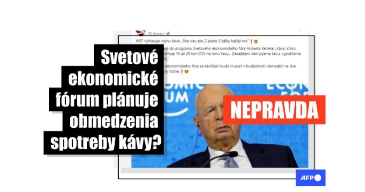 „WEF vyhlásilo vojnu káve: ‚Nie viac ako 2 či 3 šálky ročne!‘“ píše sa v nadpise textov na stránkach badatel.net či cz24.news, ktoré na Facebooku zdieľali desiatky či stovky používateľov.