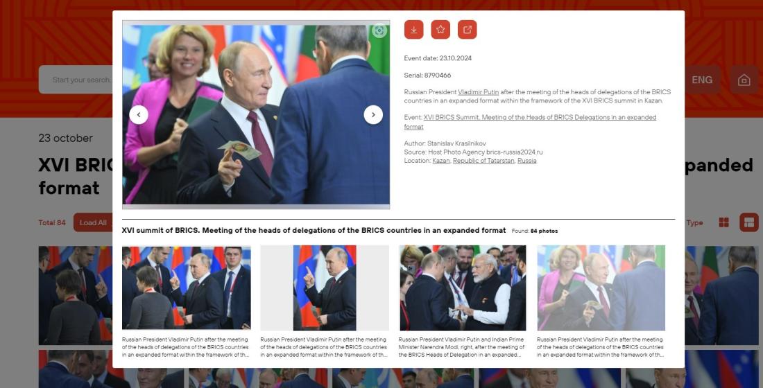 Agentúra AFP informovala o samite BRICS a zachytila okamih, keď jeden z účastníkov na druhý deň odovzdal Putinovi „bankovku“. Putin ju potom ukázal indickému premiérovi Naréndrovi Módímu.