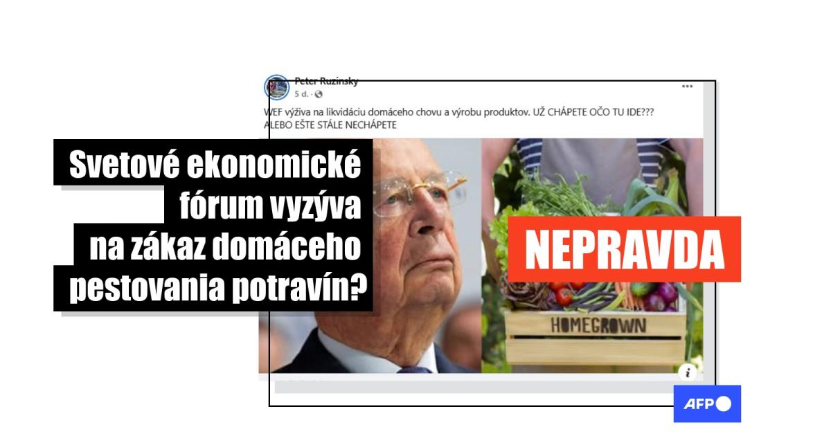 Tento ako aj mnohé iné príspevky obsahujú pre zmenu odkaz na článok v češtine z blogu CZ24.NEWS, ktorý v minulosti viackrát šíril nepravdivé či zavádzajúce tvrdenia (tu alebo tu). Pochádza z 19. marca a má nadpis: „WEF vyzýva na celosvetový zákaz domáceho pestovania potravín s cieľom dosiahnuť plán ‚čistej nuly‘“.
