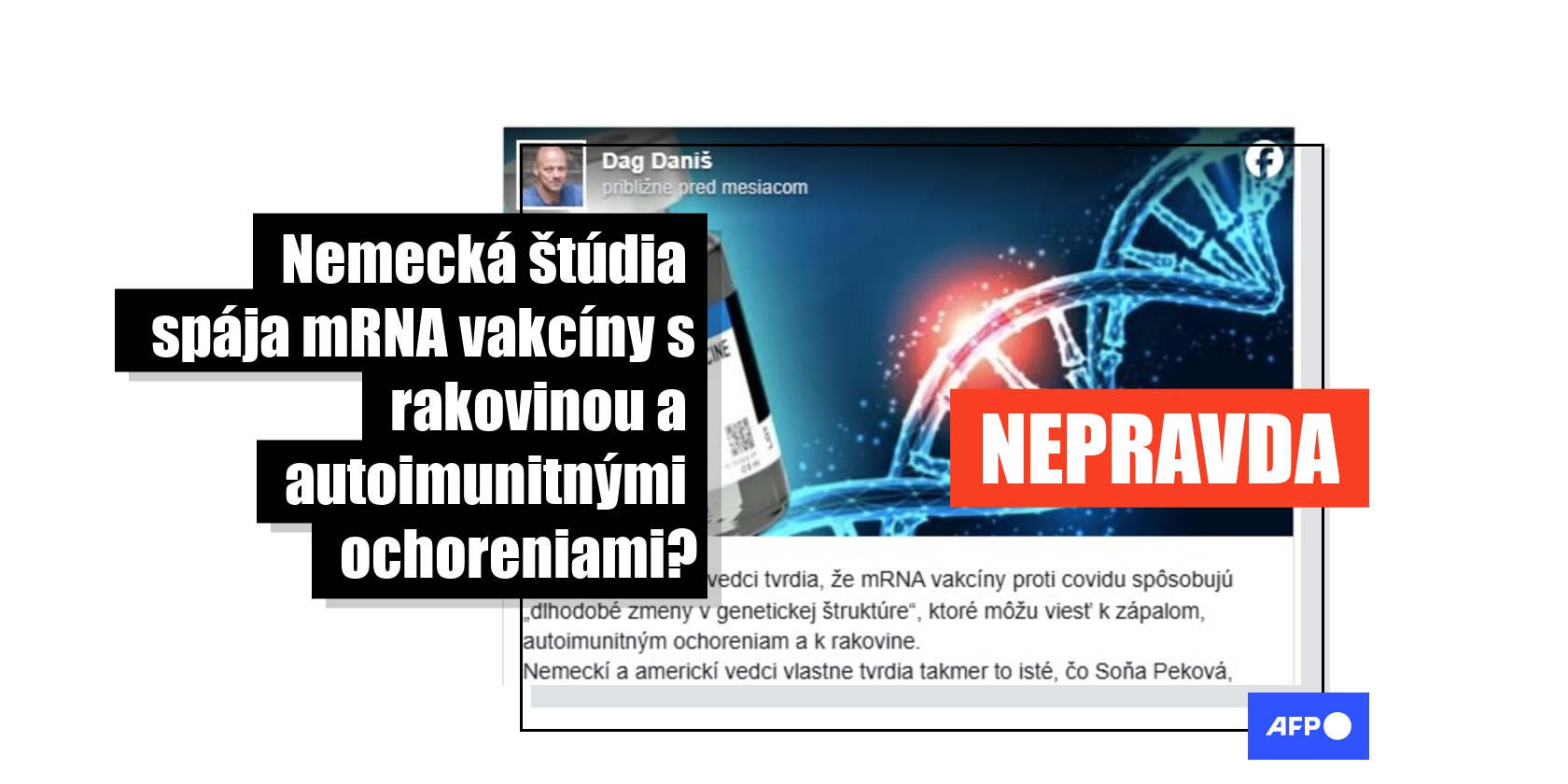 Zavádzajúce príspevky na sociálnych médiách spomínali aj údajnú súvislosť medzi mRNA vakcínami a rakovinou, hoci táto spojitosť nebola v spomínanej štúdii uvedená.