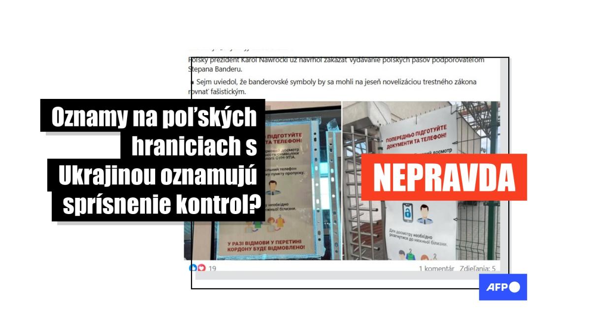 „Poľsko začalo prísnu kontrolu Ukrajincov na hraniciach. Poľskí pohraničníci hľadajú na Ukrajincoch zakázané nacistické symboly. Mnohí sa musia vyzliecť do spodnej bielizne, aby im mohli skontrolovať tetovania. Kontrolujú aj smartfóny,“ čítame v tomto slovenskom príspevku na Facebooku z 26. augusta 2025. Je sprevádzaný snímkami údajných vytlačených oznamov z ukrajinsko-poľskej hranice. Na jednej je plagát nalepený na okne a na druhej je rovnaký nápis vo väčšom formáte pripevnený na kovovom plote vedľa turniketu.