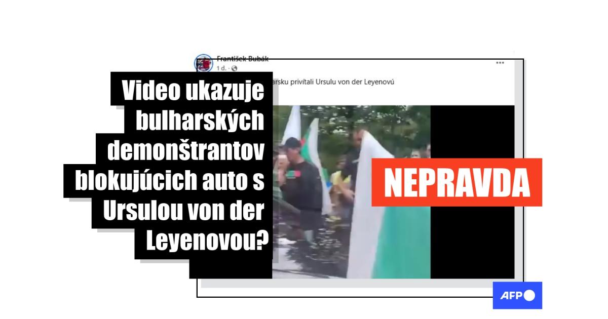 „‚Nacistka‘, ‚Nie sme kolónia Bruselu‘, ‚Dnes potrebujú bomby, zajtra tanky, pozajtra vašich synov‘ - takto privítali Uršulu von der Leyen v Bulharsku,“ čítame vo veľkom nápise v slovenčine cez krátke video, ktoré bolo na Facebooku od 1. septembra 2025 zdieľané vyše 3,5 tisíc krát. Na minútovom videu vidíme čierne vozidlo značky Audi obkolesené protestujúcimi držiacimi bulharské a ruské zástavy ako aj policajtami.