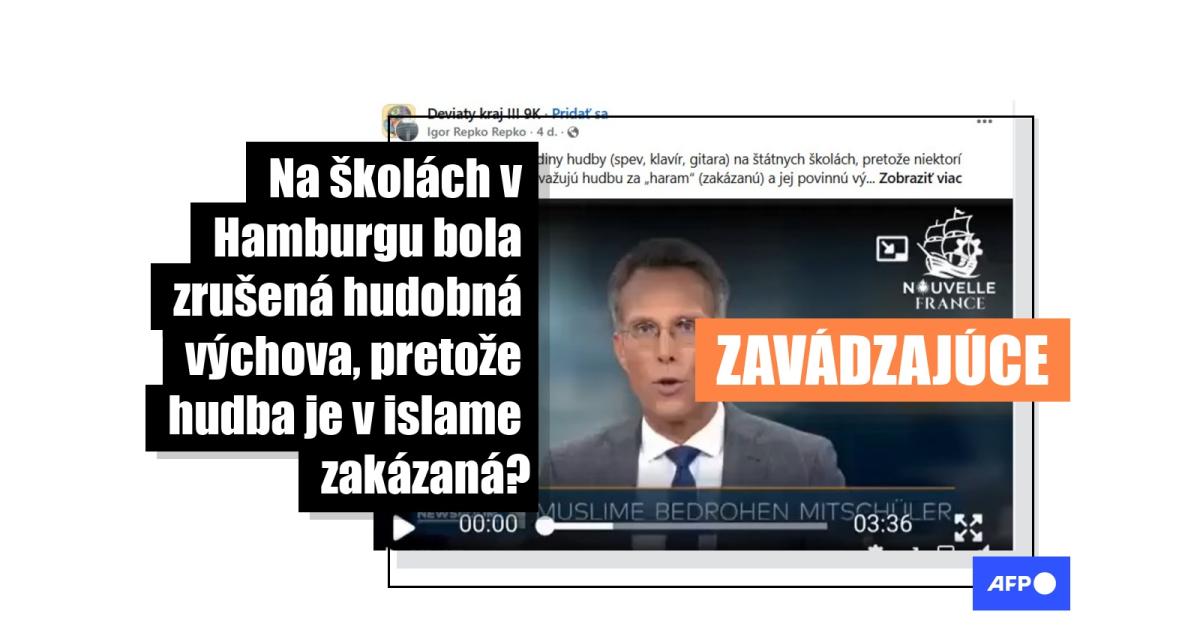 „V Hamburgu rušia hodiny hudby (spev, klavír, gitara) na štátnych školách, pretože hudba je považovaná za „harám“ niektorými islamskými ortodoxmi a vnucovanie jej moslimom je nimi vnímané ako islamofóbia,“ píše sa v slovenskom príspevku na Facebooku z 2. októbra 2025.
