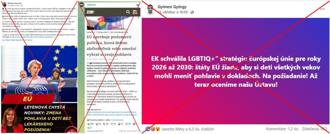V októbri 2025 sa na sociálnych médiách v Európe objavilo množstvo príspevkov tvrdiacich, že Európska únia „chce povoliť deťom zmenu pohlavia bez ohľadu na vek“. Toto tvrdenie zdieľala v príspevku na Facebooku zo 14. októbra 2025 aj slovenská politická strana Kresťanskodemokratické hnutie a jej líder Milan Majerský. Stratégiu rovnosti pritom dávajú do súvislosti s nedávnou novelou slovenskej ústavy, ktorá zakotvuje uznanie dvoch pohlaví na základe „biologických kritérií“ a stanovuje nadradenosť slovenského práva nad medzinárodným.