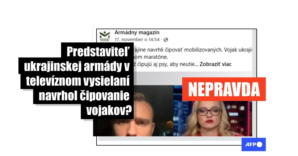 „Ako psy: na Ukrajine navrhli čipovať mobilizovaných. Vojak ukrajinskej armády predniesol takýto návrh v televíznom maratóne,“ píše sa vo facebookovom príspevku profilu „Armádny magazín“ zo 17. novembra 2025. Príspevok, ktorý obsahuje 10-sekundový klip z televízneho rozhovoru, bol zdieľaný vyše 60-krát.