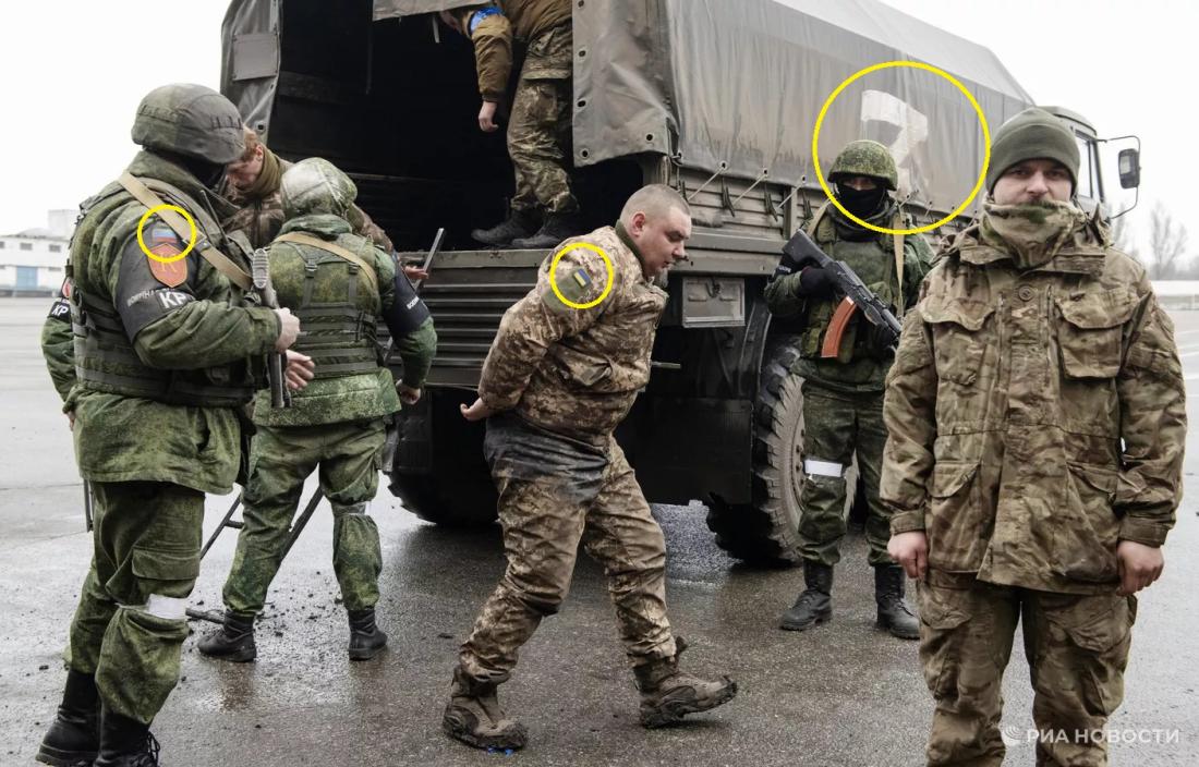 Obrázok číslo 1 bol pôvodne zverejnený ruskou štátnou tlačovou agentúrou RIA Novosti 25. februára 2022 a zobrazuje ukrajinských vojakov, ktorí sa údajne dobrovoľne vzdali v Luhanskej oblasti Donbasu. Skutočnosť, že ide o Ukrajincov zajatých ruskými vojakmi, potvrdzujú nášivky na uniformách a prítomnosť ruského symbolu invázie, písmena „Z“, namaľovaného na nákladnom aute.