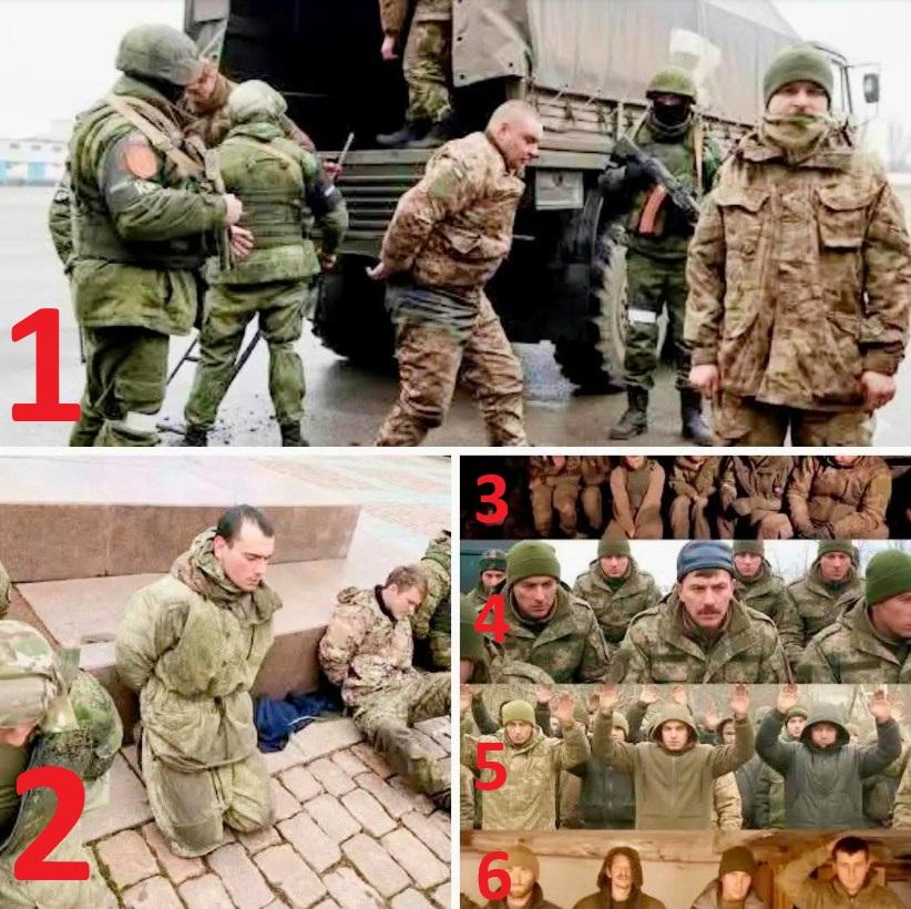 Obrázok číslo 2 pochádza z marca 2022, no tentoraz zobrazuje ruských vojakov, ktorí boli zajatí v meste Mykolajiv na juhu Donbasu za prítomnosti ukrajinského vojenského veliteľa a poslanca Romana Kostenka. Táto fotografia bola uverejnená 22. marca 2022 na oficiálnej webovej stránke Hlavného spravodajského riaditeľstva Ministerstva obrany Ukrajiny.