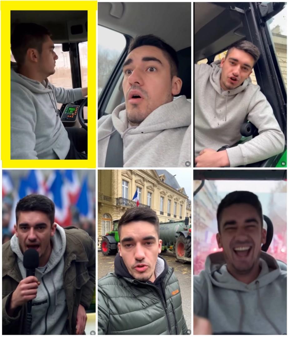Iné nedávno vydané videá tohto používateľa ukazujú rovnakého muža ako v predmetnom videu, ako sedí v šedej mikine a v zelenom traktore a unáša policajné auto tu, alebo ako strieka hnedú tekutinu na policajtov pred sídlom francúzskeho prezidenta tu.