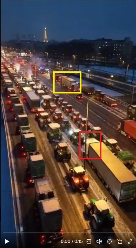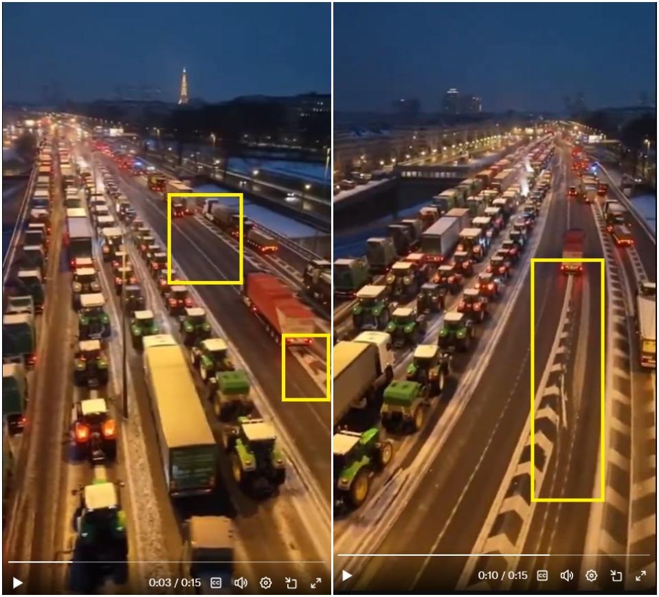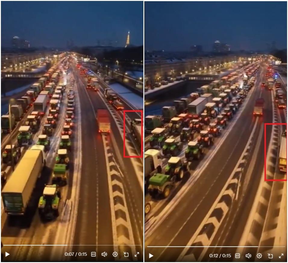 Od začiatku januára 2026 zorganizovali francúzski poľnohospodári viacero protestov s hlavným cieľom vyjadriť nesúhlas s obchodnou dohodou medzi Európskou úniou a štyrmi juhoamerickými krajinami, ktorú vnímali ako poslednú kvapku v kontexte širších obáv. V tejto súvislosti sa na sociálnych médiách virálne rozšírilo video, ktoré údajne zachytávalo kolónu traktorov na diaľnici neďaleko Paríža. AFP však na základe viacerých vizuálnych nezrovnalostí a pomocou nástrojov na detekciu AI zvukovej stopy zistila, že klip nie je autentický. Okrem toho neexistujú žiadne spoľahlivé mediálne správy o takomto incidente v konkrétny deň.