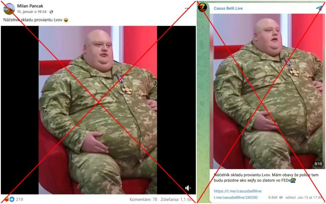 V polovici januára 2026 sa na sociálnych médiách šírilo video, na ktorom sa uniformovaný obézny muž počas televízneho rozhovoru sťažuje, že Rusi kradnú potraviny. Tento muž, ktorý tvrdí, že je vedúcim oddelenia potravinových zásob v ukrajinskom regióne Ľvov, však neexistuje. Vizuálne nezrovnalosti aj analýza zvuku naznačujú, že virálne video bolo vytvorené pomocou umelej inteligencie a nezobrazuje skutočného vojenského príslušníka. Regionálna vojenská správa v Ľvove navyše nemá jednotku, ktorá sa vo videu spomína.