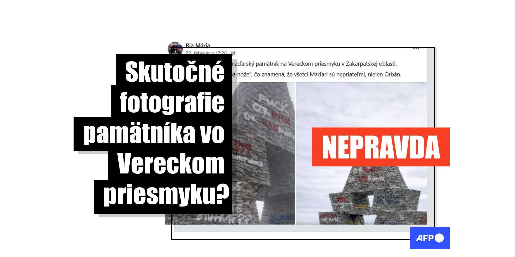 V príspevkoch na sociálnych médiách sa šíri dvojica obrázkov pamätníka vo Vereckom priesmyku na Ukrajine spolu s tvrdením, že ho „počmárali Banderovci“. Iné príspevky používajú len jeden obrázok a narábajú s termínmi „znevästenie“ a „ukrajinskí neonacisti“.