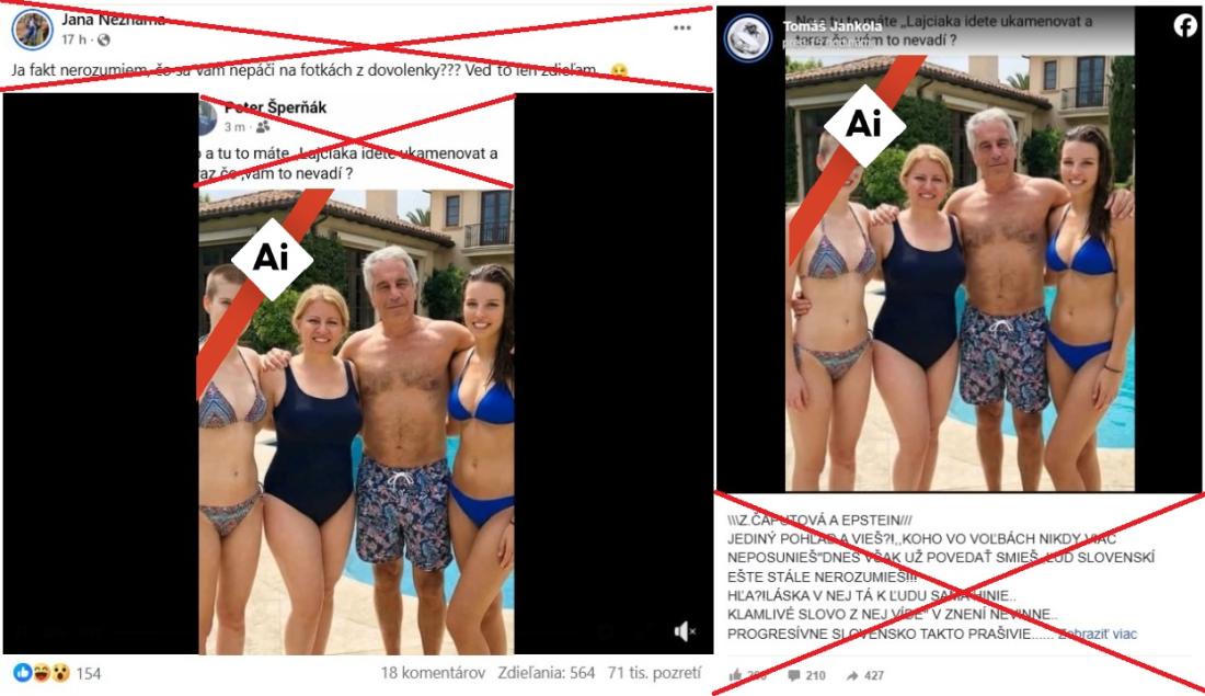 Obrázok Epsteina v plavkách v objatí s Čaputovou a jej dcérami vytvorila umelá inteligencia