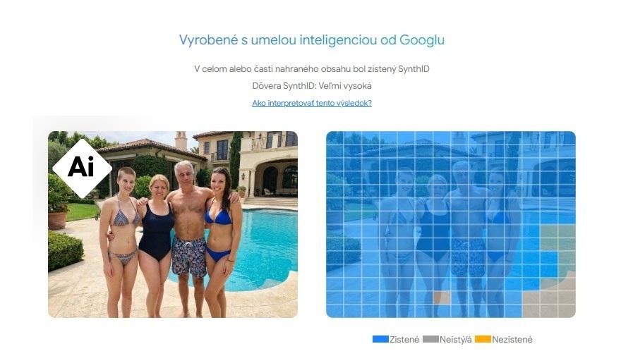 Pri analýze tejto verzie identifikoval detekčný nástroj Google prítomnosť digitálneho vodoznaku SynthID, ktorý je vkladaný do obrázkov a videí vytvorenými modelmi umelej inteligencie od Google. Vodoznak sa v obrázku vyskytuje vo veľkom rozsahu, čo nástroj priviedlo k záveru, že obrázok bol vytvorený AI od Google s „veľmi vysokou“ mierou istoty.