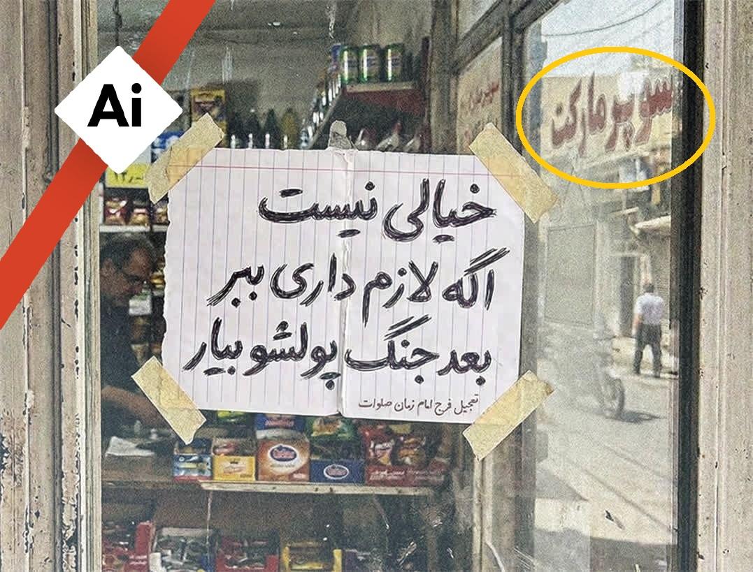 Obrázok oznamu na iránskom supermarkete vytvorila umelá inteligencia