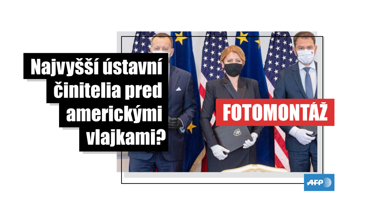 Fotografia, na ktorej sú traja najvyšší ústavní činitelia pod americkými vlajkami, je zmanipulovaná
