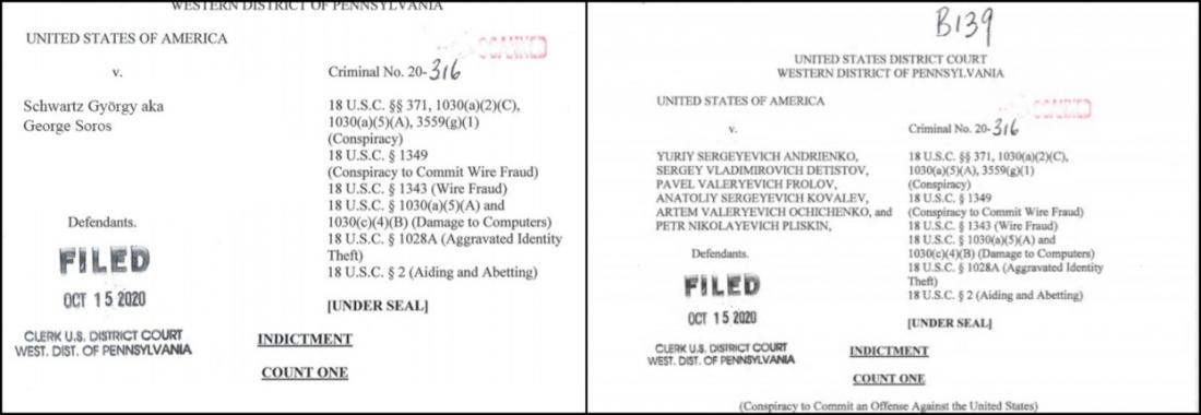 V príspevku sa uvádza, že obžaloba sa zameriava „na trestnú činnosť, ktorej sa Soros zúčastnil pred voľbami, ako sú podvodné krádeže, krádeže identity a poškodzovanie počítačov“, ale podľa FBI bude pravdepodobne aktualizovaná tak, „aby odrážala obvinenia z volebného zasahovania“.