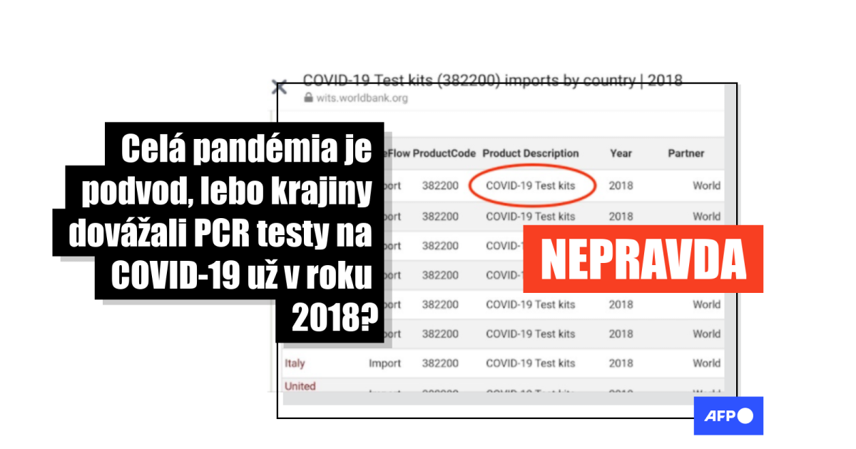 Stránka Badatel.net zazdieľala 16. septembra 2020 článok s titulkom „Obrovský podvod: Svetová banka už v roku 2018 evidovala testy na COVID-19“. V ňom sa píše: „Neuveríte, ale na stránke Svetovej banky sa našli informácie o tom, koľko rôzne krajiny nakúpili PCR testov na COVID-19 už v roku 2018!“.
