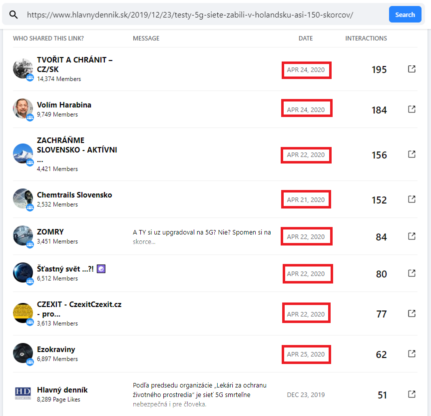 Aj keď boli články pôvodne uverejnené už pomerne dávno, masívnejšie sa začali zdieľať až v druhej polovici apríla 2020.