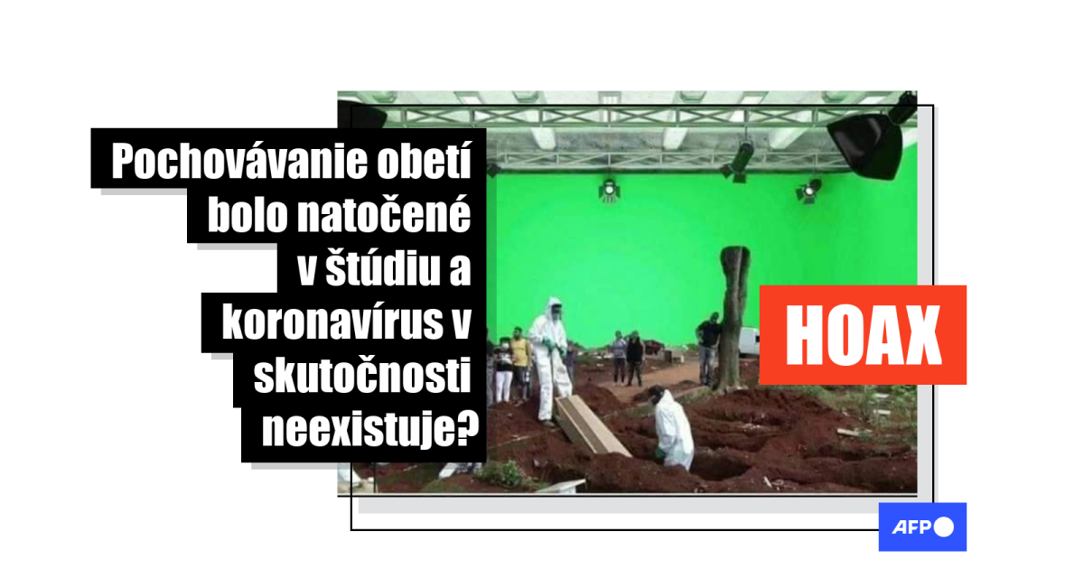 „Kedy ľudia konečne pochopia, že žiadna corona neexistuje ?????Že je to len jedno veľké divadlo??...,“ píše sa v príspevku zdieľanom na súkromnom profile na slovenskom Facebooku. Príspevok obsahuje obrázok, ktorý vytvára dojem, že záber z pochovávania bol zhotovený vo filmovom štúdiu.