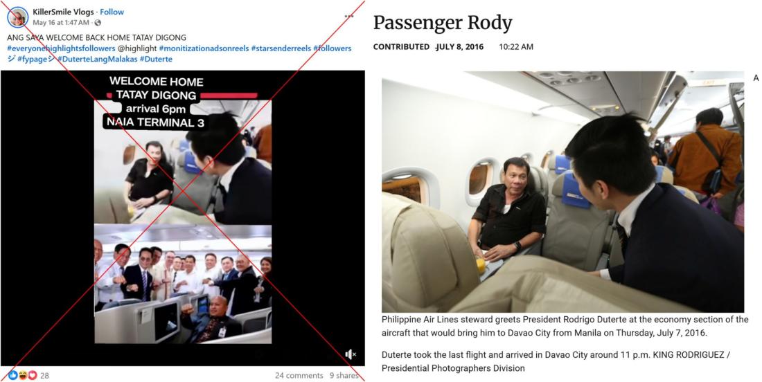 Moreover, the circulating visuals purportedly showing Duterte's return home are misrepresented.