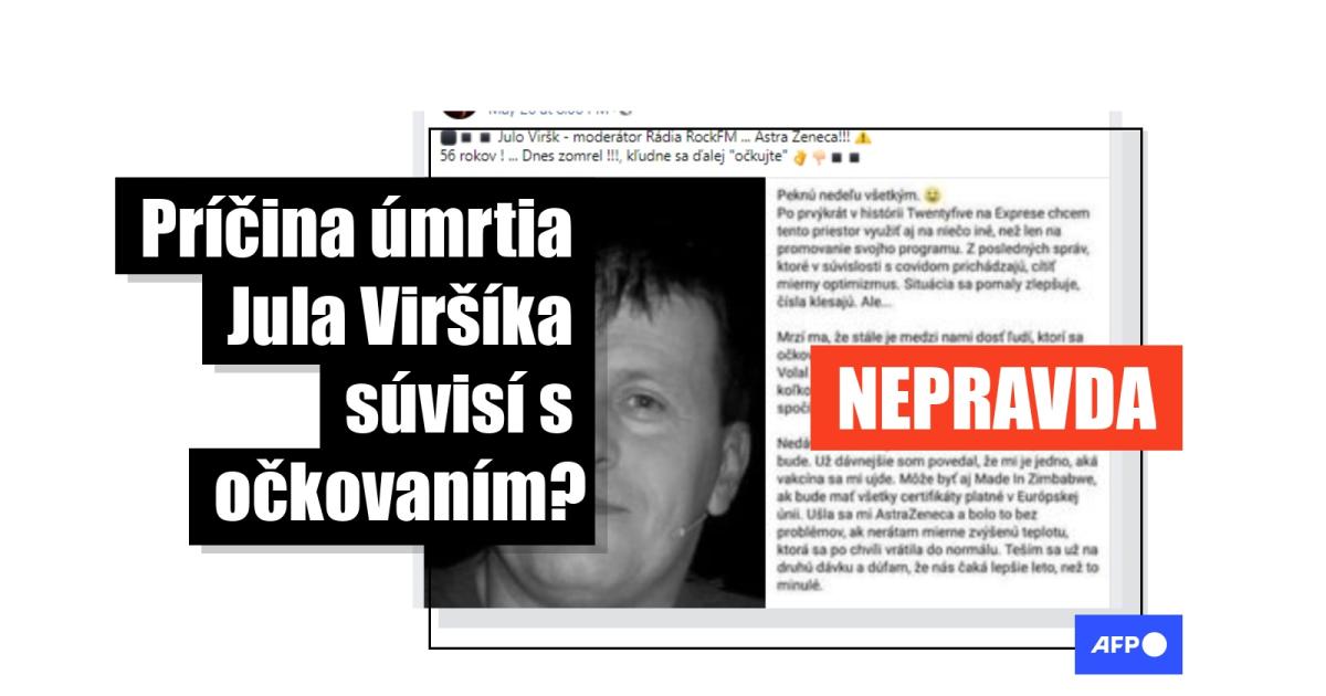Výsledok pitvy, o ktorej informovalo ministerstvo zdravotníctva 27. mája o 20:28 na Facebooku, vyvracia akúkoľvek príčinnú súvislosť medzi Viršíkovým očkovaním proti ochoreniu Covid-19 10. apríla a jeho úmrtím 26. mája.