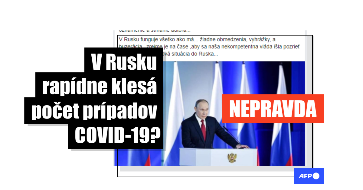 „V RUSKU RAPÍDNE KLESÁ POČET PRÍPADOV COVID19 , PUTIN OZNÁMIL..,“ píše sa v prvej vete príspevku. Tvrdenie pokračuje nižšie: „Prezident Ruskej federácie Vladimír Putin oznámil, že Rusko zvládlo nákazu COVID19 profesionálne a jednoznačne... Masovo nepribudaju chorí alebo pribúdajú iba minimálne.“