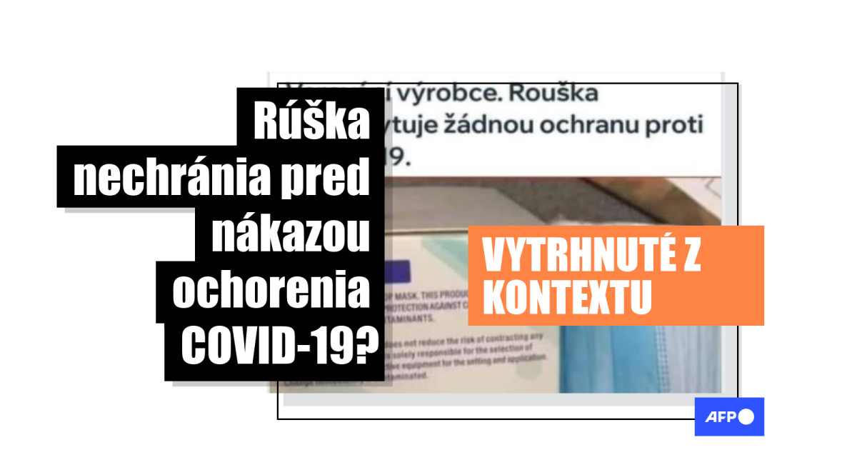 Tisíce Slovákov na Facebooku zdieľali obrázok, na ktorom je vidno balenie rúšok s upozornením v angličtine, podľa ktorého rúško „neposkytuje žiadnu ochranu proti COVID-19“. Jeden z takýchto príspevkov uverejnila napríklad FB stránka Prečo média mlčia.