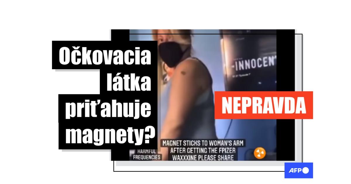 Používatelia sociálnych sietí v posledných týždňoch vo veľkom zdieľali videá, podľa ktorých očkovacia látka vo vakcíne proti Covid-19 pôsobí priťahuje magnety. „Videl som už niekoľko videí, na ktorých si ľudia na miesta vpichov vakcín prikladajú magnet. A drží tam…,“ znie popis videa, ktoré bolo uverejnené v skupine Veľké Prebudenie 12. mája 2021. Vo videu vidieť ženu, ktorá ukazuje, ako jej na ramene v mieste vpichu drží magnetka. „Všetci sme začipovaní,“ hovorí, pričom poukazuje na populárnu konšpiračnú teóriu, podľa ktorej je pandémia koronavírusu iba zásterkou pre plán začipovania svetovej populácie.