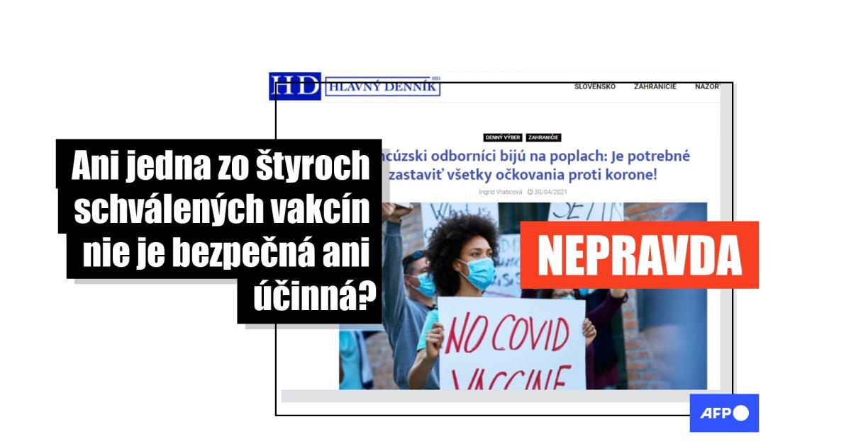 „Francúzski odborníci bijú na poplach: Je potrebné zastaviť všetky očkovania proti korone!“ znie titulok článku, ktorý bol zverejnený 30. apríla 2021 na weboch slovanskenoviny.sk, hlavnydennik.sk a somzdediny.sk (patriaci taktiež pod Hlavný Denník).