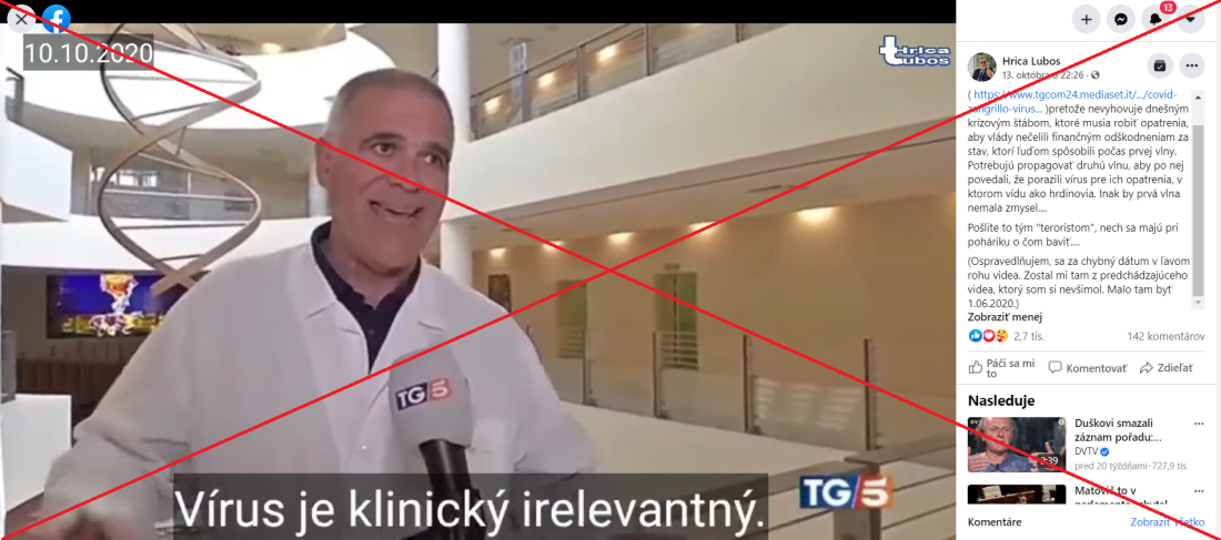 Video talianskeho lekára tvrdiaceho, že koronavírus je „klinicky irelevantný“, je zastarané. Svoje tvrdenia odvtedy korigoval