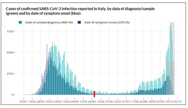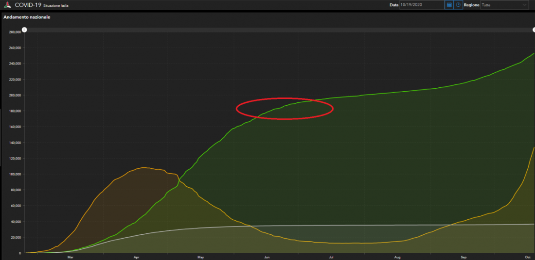 Odvtedy dorazila do Talianska, rovnako ako do ostatných krajín Európy, druhá vlna koronavírusovej pandémie, čo vyplýva aj z vyššie uvedených grafov.