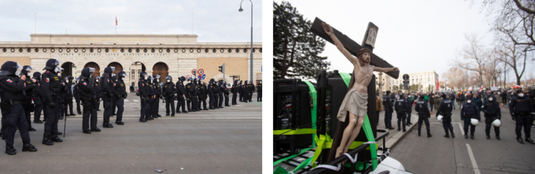 Viedenská polícia samotná ešte 31. januára verejne poprela, že by jej príslušníci vyjadrili podporu protestujúcim prostredníctvom Twitteru: „Vzhľadom k opakujúcim sa obvineniam o tom, že ’sme mali kráčať spoločne’ s protestujúcimi: Akonáhle sa začne zhromaždenie, je vždy sprevádzané kolegami vpredu, po jeho stranách a na konci, pokiaľ je to možné.“